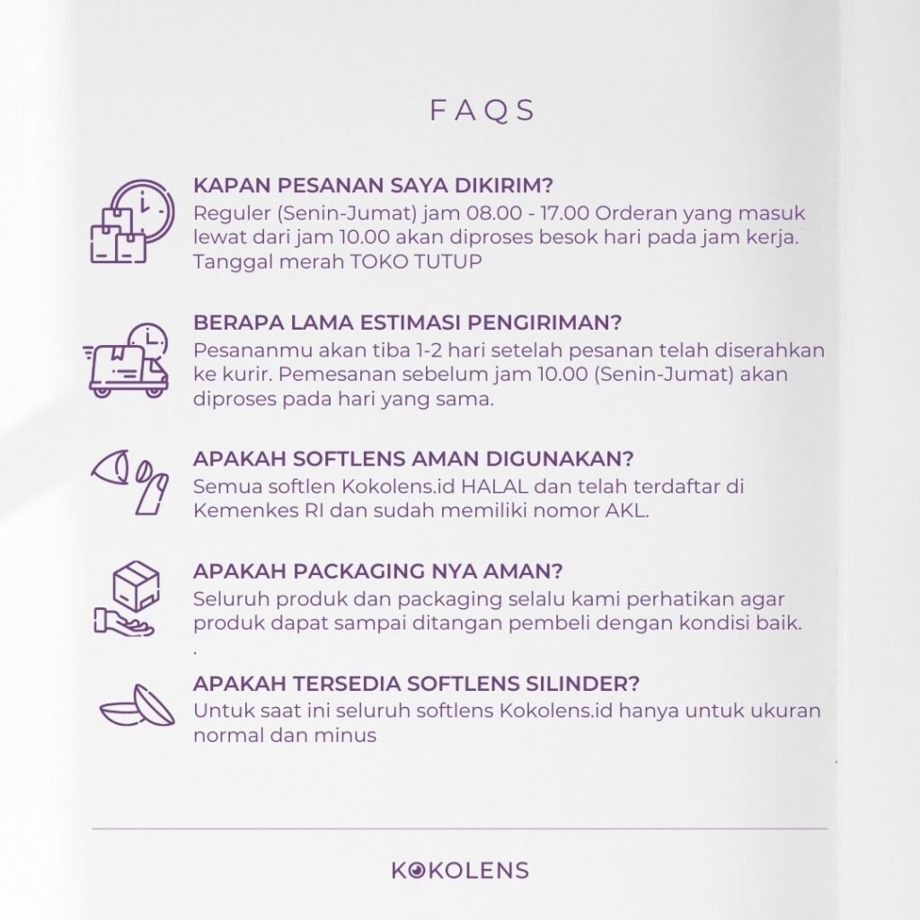 – PRODUK TIDAK TERMASUK LENS CASE, lens case dapat dibeli pada etalase toko dengan nama pencarian “Kokolens Clear Lenscase Softlens” atau “Kokolens Purple Lenscase Softlens”
