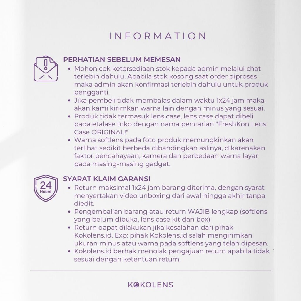 – PRODUK TIDAK TERMASUK LENS CASE, lens case dapat dibeli pada etalase toko dengan nama pencarian “Kokolens Clear Lenscase Softlens” atau “Kokolens Purple Lenscase Softlens”